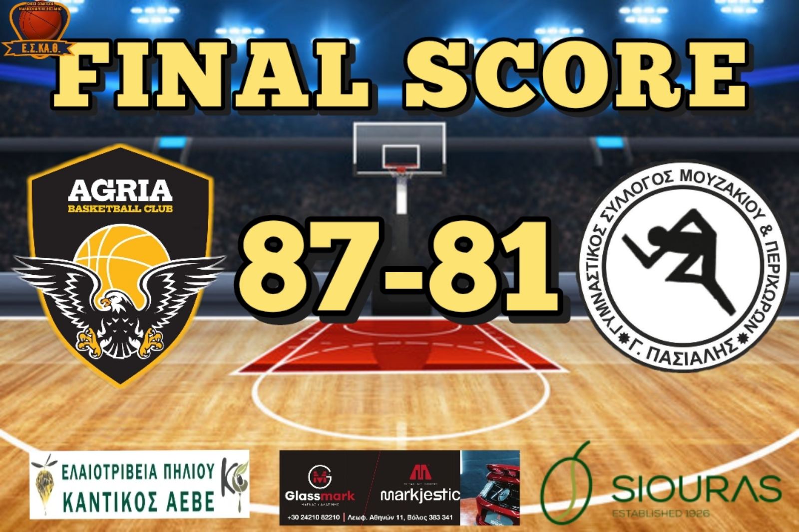 Αγριά BC 🆚 Γ.Σ. Μουζακίου 87 - 81